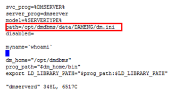把这一行改为如上图所示的情况path=/opt/dmdbms/data/DAMENG/dm.ini,然后保存退出
